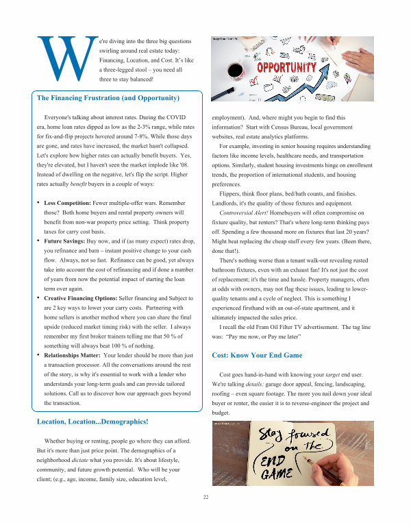 We ' re diving into the three big questions swirling around real estate today: Financing, Location, and Cost. It’ s like a threelegged stool – you need all three to stay balanced!