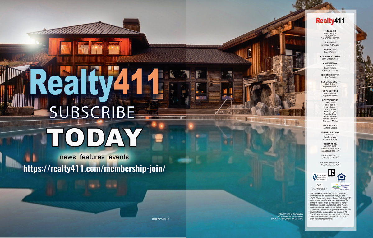 DISCLOSURE The information, articles, columns and advertisements in this publication and Realty411. com, reiWEALTHmag. com and / or other domains,( collectively“ 411”) are for informational and entertainment purposes only. The information provided therein do not constitute an offer or solicitation to buy or sell securities or real estate. Please be aware that real estate investing is risky. Realty411 does not represent that any information or opinions expressed and data provided reflect the opinions, advice and research of 411. Realty411 strongly recommends that you seek the advice of your trusted attorney, broker, CPA and / or financial advisor before taking action as an investor.