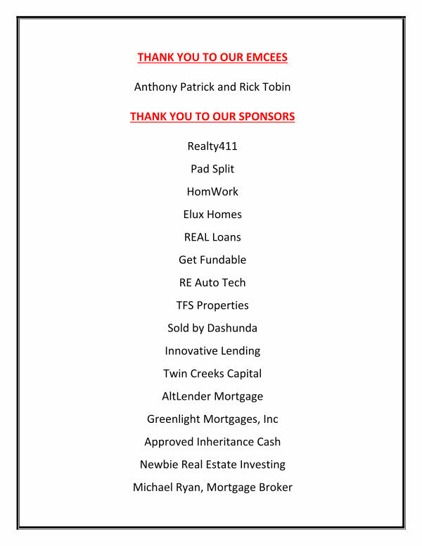 THANK YOU TO OUR EMCEES Anthony Patrick and Rick Tobin THANK YOU TO OUR SPONSORS