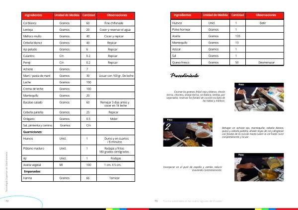 Col blanca Gramos 60 Fine chifonade Lenteja Gramos 20 Cocer y reservar el agua Melloco mullo Gramos 40 Cocer y repicar Cebolla blanca Gramos 40 Repicar Ajo pelado Gramos 6 Repicar Culantro C / n 0.2 Repicar Perejil C / n 0.2 Repicar Achiote Gramos 7 Maní / pasta de maní Gramos 30 Licuar con 100 gr . De leche Leche Gramos 100 Crema de leche Gramos 100 Mantequilla Gramos 20