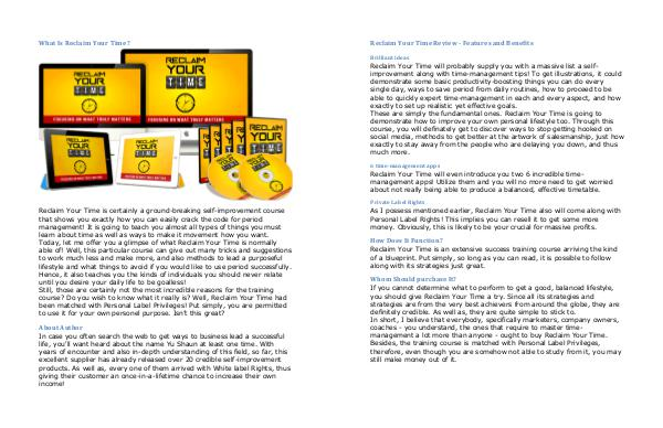 As I possess mentioned earlier, Reclaim Your Time also will come along with