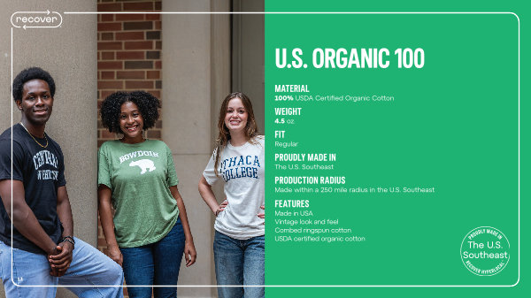 Made in USA Vintage look and feel Combed ringspun cotton USDA certified organic cotton