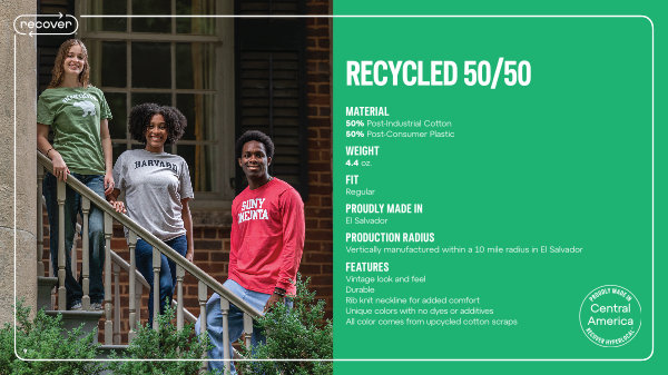 50 % Post-Industrial Cotton 50 % Post-Consumer Plastic