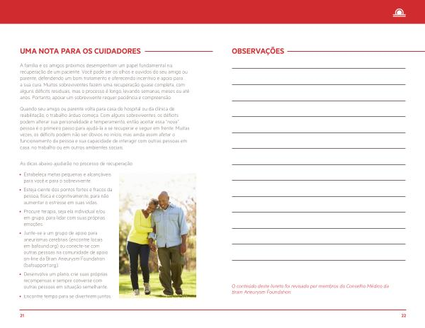 • Junte-se a um grupo de apoio para aneurismas cerebrais ( encontre locais em bafound . org ) ou conecte-se com outras pessoas na comunidade de apoio on-line da Brain Aneurysm Foundation ( bafsupport . org ).