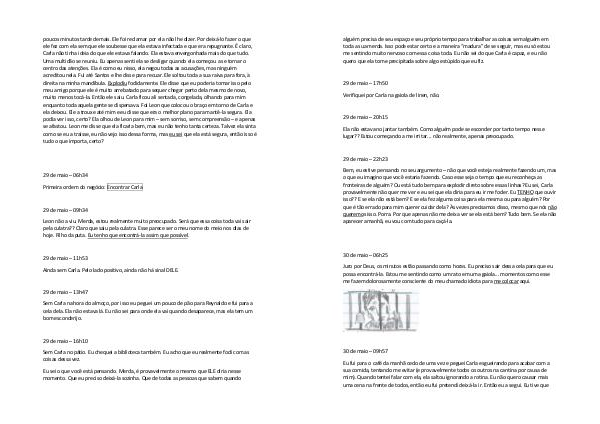 Bem, eu estive pensando no seu argumento – não que você esteja realmente fazendo um, mas o que eu imagino que você estaria fazendo. Caso esse seja o tempo que eu reconheça as fronteiras de alguém? Ou está tudo bem para explodir direto sobre essas linhas? Eu sei, Carla provavelmente não quer me ver e eu sei que ela diria para eu ir me foder. Eu TENHO que ouvir isso?? E se ela não está bem? E se ela fez alguma coisa para ela mesma ou para alguém? Por que é tão errado para mim querer cuidar dela? Às vezes precisamos disso, mesmo que nós não queremos isso. Porra. Por que apenas não me deixa ver se ela está bem? Tudo bem. Se ela não aparecer amanhã, eu vou com tudo para caçá-la.