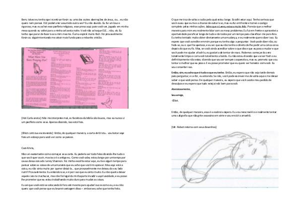 [Elliot continua escrevendo]: Então, de qualquer maneira, a carta de Krista... vou botar aqui