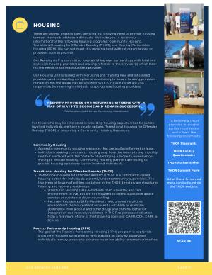 There are several organizations servicing our growing need to provide housing to meet the needs of these individuals . We invite you to review our information for the following housing programs : Community Housing , Transitional Housing for Offender Reentry ( THOR ), and Reentry Partnership Housing ( RPH ). We can not meet this growing need without organizations or providers such as yourself .