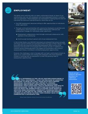 This great work continues with our team continuing to knock on doors in our communities and visit with employers who have expressed interest in working with our population . These employers are committed to looking beyond what an individual has done but looking forward to what they can do .