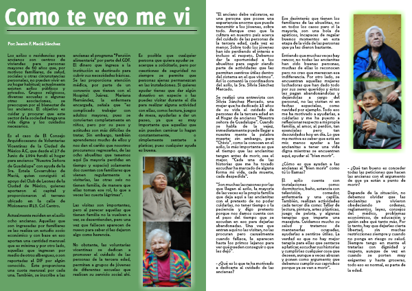 Es el caso de El Consejo Arquidiocesano de Voluntarias Vicentinas de la Ciudad de México A.C, que desde el 27 de Junio de 1994 fundó el hogar para ancianos “Nuestra Señora de Guadalupe” con ayuda de la Sra. Estela Covarrubias de Maciá, quien consiguió el apoyo del Club de Leones de la Ciudad de México, quienes aportaron el capital y proporcionaron el terreno ubicado en la calle de Misioneros #13. Col Centro.