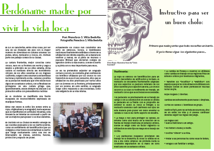 La ropa es símbolo de identificación para un cholo; mecanismo de unificación y rechazo, el vestuario se encuentra fuertemente asignado por dos aspectos: el pachuco veterano de los años cuarenta y la ocupación laboral. Los cholos sacaron a la calle su vestimenta de trabajo, un vestuario con el que la sociedad se escandalizo.
