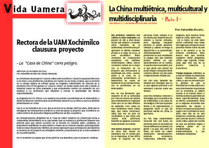El coordinador del proyecto “Casa de China UAM Xochimilco”, anunció el pasado miércoles 8 de enero a sus profesores y alumnos por medio de las redes sociales, que la Rectoria de la Unidad dejaría de brindar apoyo al Programa Universitario de Ciencias de la Transición (PUCT) incluyendo la “Casa de China”, en donde desde hace año y medio se imparten clases de chino mandarín y que actualmente cuenta con alrededor de 200 alumnos y 10 profesores que imparten y buscan el aprendizaje del idioma respectivamente.