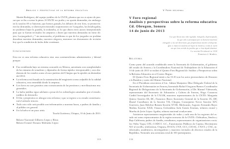 Como parte del acuerdo establecido entre la Secretaría de Gobernación, el gobierno del estado de Sonora y la Coordinadora Nacional de Trabajadores de la Educación el 14 de junio de 2013 se realizó el Quinto Foro Regional de Análisis y Perspectivas sobre la Reforma Educativa en el Centro Magno. El Quinto Foro Regional inició a las 10:30 con los actos protocolarios de Honores a la Bandera y canto del Himno Nacional. En el Presídium estuvieron el Lic. Adrian Manjarrez Díaz Delegado Federal de la Secretaría de Gobernación en Sonora, licenciado Rafael Oseguera Ramos Coordinador Regional de Delegaciones de la Secretaría de Gobernación, el Dr. Manuel Valenzuela, representante del Secretario de Educación y Cultura de Sonora, Hugo Casanova Cardiel Investigador de la UNAM, maestros representantes de la CNTE: Margarita Quiroz Sección III, BC, Francisco Bravo Secretario General de la Sección IX, DF, Daniel Castellanos de la Sección VII, Chiapas, Concepción Neves Sección XIV, Guerrero, Juan Melchor Román Sección XVIII, Michoacán, Augusto Fernando Reyes Medina Sección XXII, Oaxaca; Golondrina Isela García Encinas, relatora estatal y Martha de Jesús López Aguilar, relatora nacional coadyuvante. Asistieron representantes magisteriales de todas y cada una de las regiones del estado así como representantes de la región noroeste de la CNTE: Chihuahua, Sinaloa y Baja California; padres de familia, estudiantes, representantes de organizaciones sociales: Tribu Yaqui, CFE, CODUC A.C., Funcionarios Públicos de Cajeme, Movimiento NO al novillo, telefonistas, Orapata, STAUS, UNT, CCC, CIOAC, UNTA y CNC, intelectuales, académicos, investigadores y maestros invitados de diversos estados de la República. Teniendo una asistencia total de 550 participantes. 114