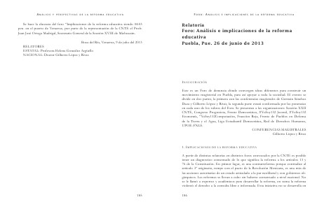 Relatoría Foro: Análisis e implicaciones de la reforma educativa Puebla, Pue. 26 de junio de 2013