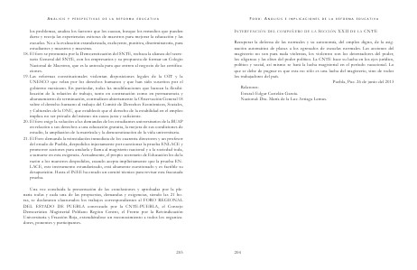 Recuperar la defensa de las normales y su autonomía, del empleo digno, de la asignación automática de plazas a los egresados de escuelas normales. Las acciones del magi sterio no son para nada violentas, los violentos son los detentadores del poder, los oligarcas y las elites del poder político. La CNTE hace su lucha en los ejes jurídico, político y social, así mismo se hará la lucha magisterial en el período vacacional. Lo que se debe de pugnar es que esta no sólo es una lucha del magisterio, sino de todos los trabajadores del país. Puebla, Pue. 26 de junio del 2013 Relatores: Estatal: Edgar Castelán García. Nacional: Dra. María de la Luz Arriaga Lemus.