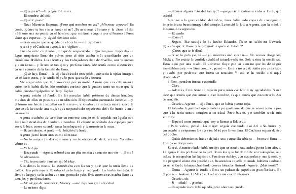 —Seguro. Ese tatuaje lo ha hecho Eduardo. Tiene un salón en Newark.
