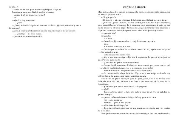 —Tienes catorce años y estás en la calle a todas horas. ¿No se enfadan tus