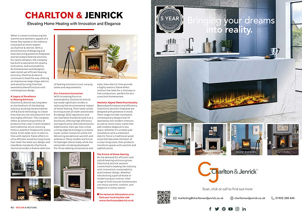 When it comes to enhancing the warmth and aesthetic appeal of a home, few names in the industry command as much respect as Charlton & Jenrick. With a proud history of designing and manufacturing premium fireplaces and secondary heating solutions for nearly 40 years, the company has built a reputation for quality, innovation, and sustainability. As homeowners and designers seek stylish yet efficient heating solutions, Charlton & Jenrick continues to lead the way, offering an impressive range of gas, electric and wood-burning fires that seamlessly blend function with contemporary design.