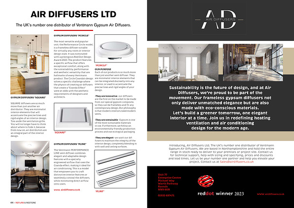 Introducing, Air Diffusers Ltd. The UK’ s number one distributor of Ventmann Gypsum Air Diffusers. We are based in Northamptonshire and hold the entire range in stock ready to deliver to your premises or project site. Contact us for technical support, help with sizing and specifying, prices and discounts and lead times. Let us be your number one partner and help you elevate your project. Contact us at Sales @ airdiffusers. co. uk