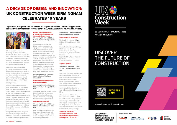 UK Construction Week Birmingham( September 30 to October 2) offers three unmissable days of the latest product launches, live demos, technical workshops and CPD-accredited talks, making it a must-attend event for anyone in the construction industry.
