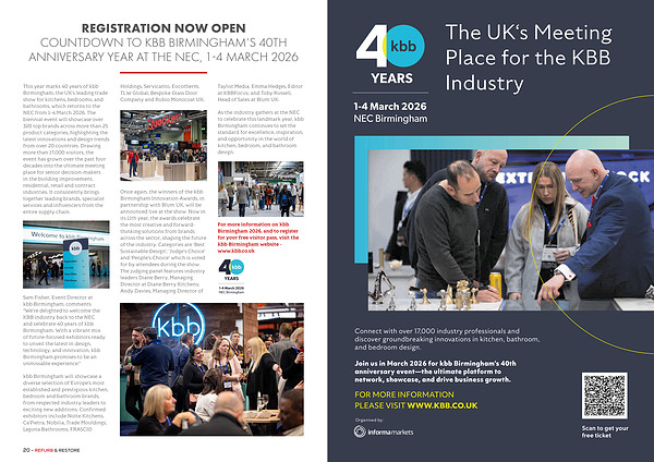 REGISTRATION NOW OPEN COUNTDOWN TO KBB BIRMINGHAM’ S 40TH ANNIVERSARY YEAR AT THE NEC, 1-4 MARCH 2026