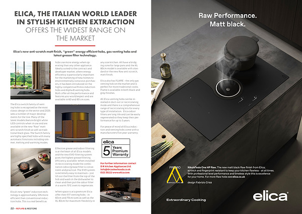 NikolaTesla One HP Raw. The new matt black Raw finish from Elica; scratch and fingerprint resistant to keep your kitchen flawless- at all times. With professional level performance and timeless style this is excellence for your home. For more Raw hobs see elica. co. uk