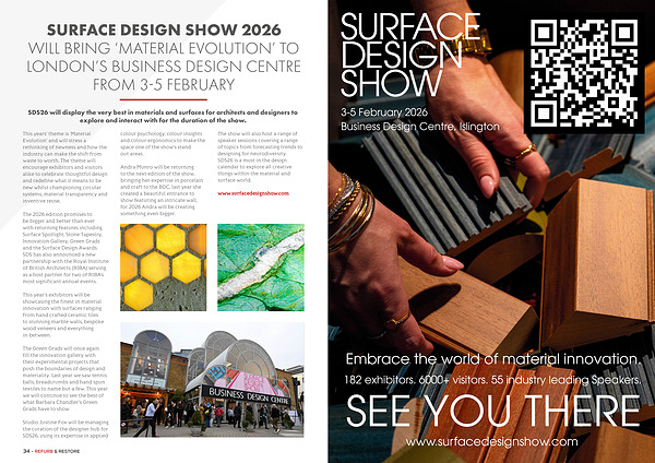 The show will also host a range of speaker sessions covering a range of topics from forecasting trends to designing for neurodiversity. SDS26 is a must in the design calendar to explore all creative things within the material and surface world.