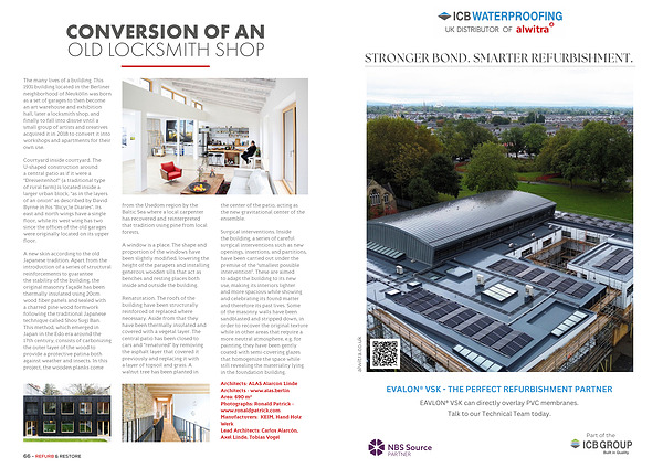 The many lives of a building. This 1931 building located in the Berliner neighborhood of Neukölln was born as a set of garages to then become an art warehouse and exhibition hall, later a locksmith shop, and finally to fall into disuse until a small group of artists and creatives acquired it in 2018 to convert it into workshops and apartments for their own use.