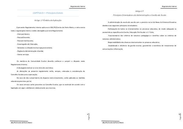 O presente Regulamento Interno aplica-se à EB1/PE/Creche de Porto Moniz, e nele consta