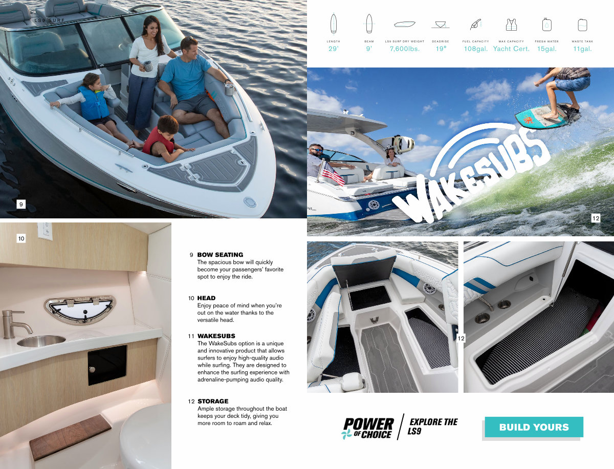 12 STORAGE Ample storage throughout the boat keeps your deck tidy, giving you more room to roam and relax.