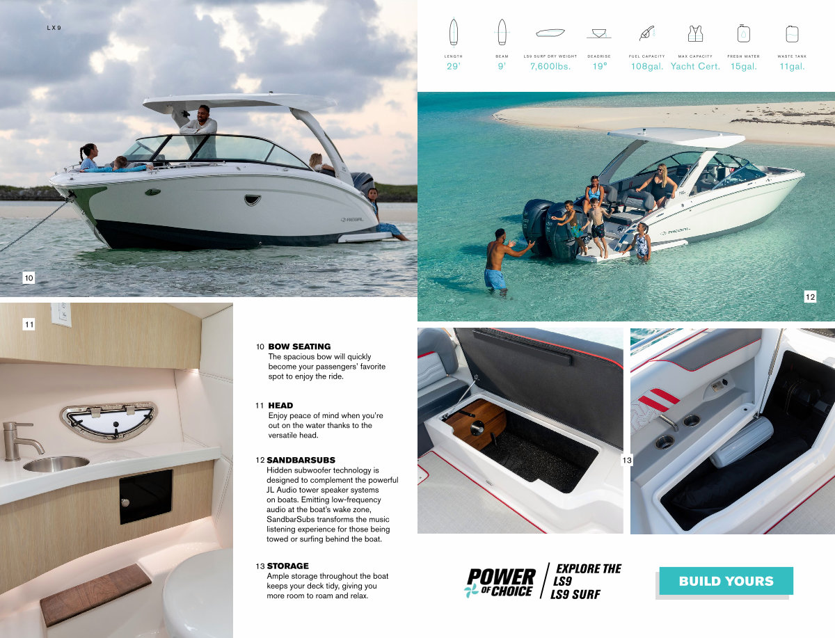 13 STORAGE Ample storage throughout the boat keeps your deck tidy, giving you more room to roam and relax.