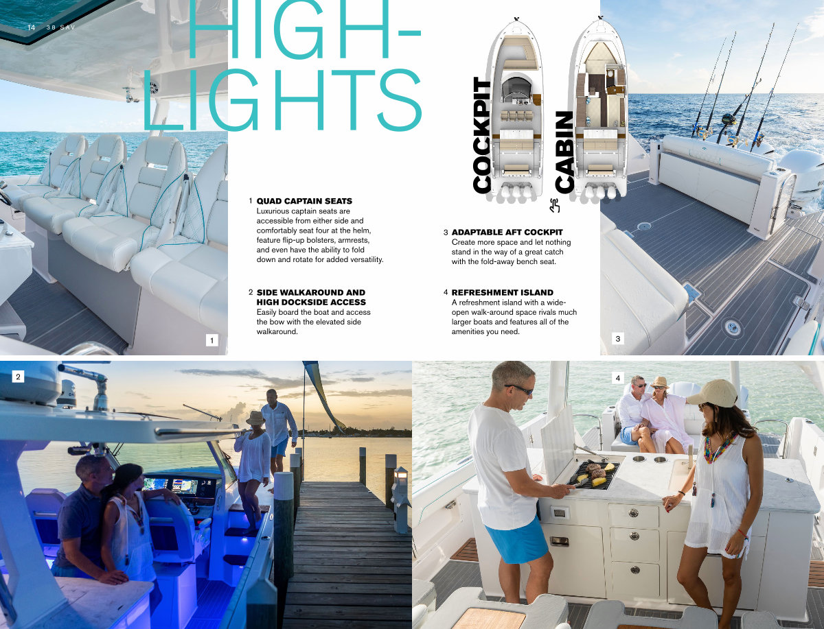 ADAPTABLE AFT COCKPIT Create more space and let nothing stand in the way of a great catch with the fold-away bench seat.