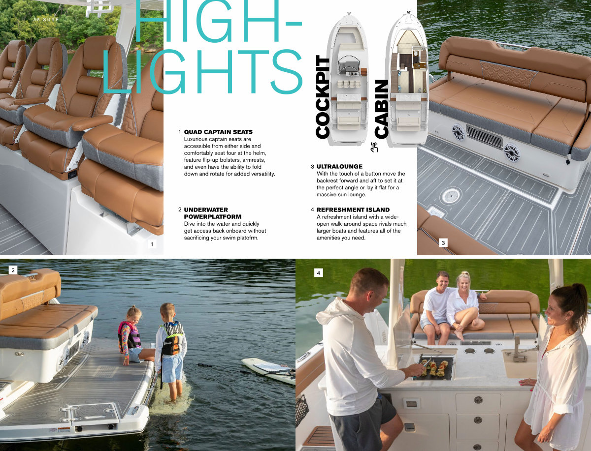 REFRESHMENT ISLAND A refreshment island with a wideopen walk-around space rivals much larger boats and features all of the amenities you need.