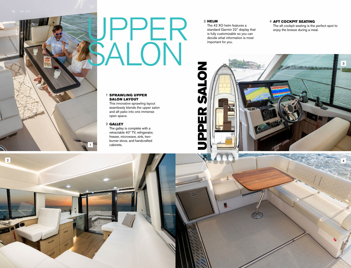 HELM The 42 XO helm features a standard Garmin 22” display that is fully customizable so you can decide what information is most important for you.