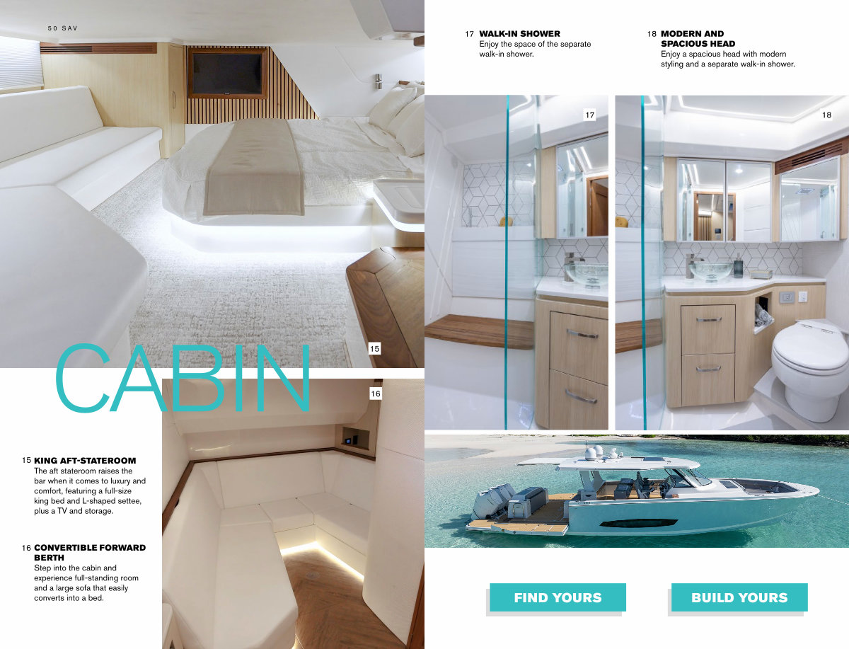 MODERN AND SPACIOUS HEAD Enjoy a spacious head with modern styling and a separate walk-in shower.