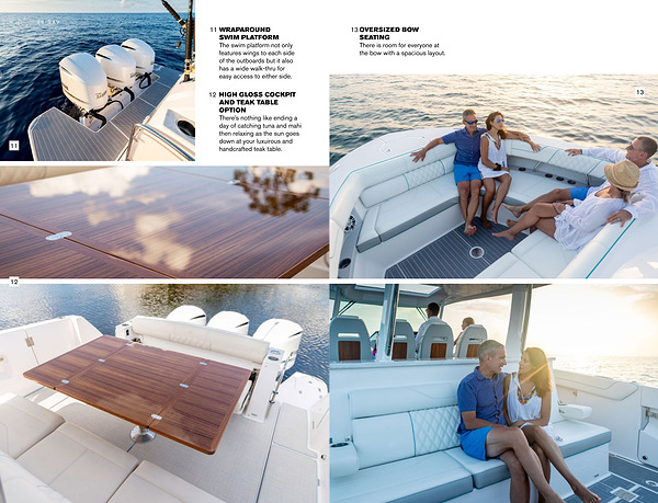 13 OVERSIZED BOW SEATING There is room for everyone at the bow with a spacious layout .