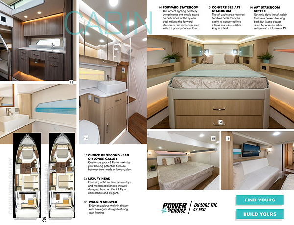 STATEROOM The aft cabin area features two twin beds that can easily be converted into a large and comfortable king size bed . |