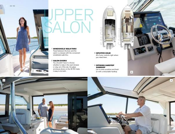 WINDSHIELD WALK-THRU Travel between the bow and the salon is a breeze with the convenient windshield walk-thru .