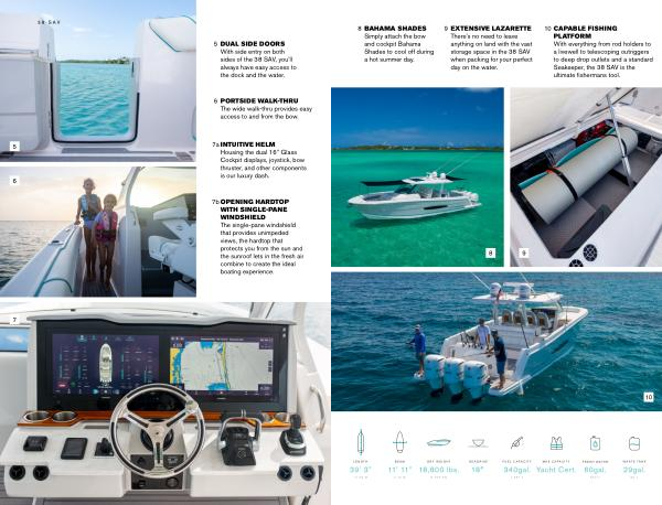 There ’ s no need to leave anything on land with the vast storage space in the 38 SAV when packing for your perfect day on the water . |