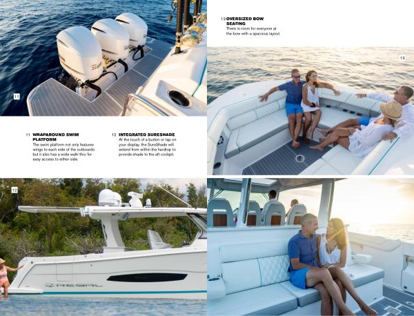 PLATFORM The swim platform not only features wings to each side of the outboards but it also has a wide walk-thru for easy access to either side . |