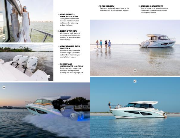 Take your family only steps away to the Trips off shore have never been more beach thanks to the outboard engines . comfortable thanks to the standard Seakeeper stabilizer .