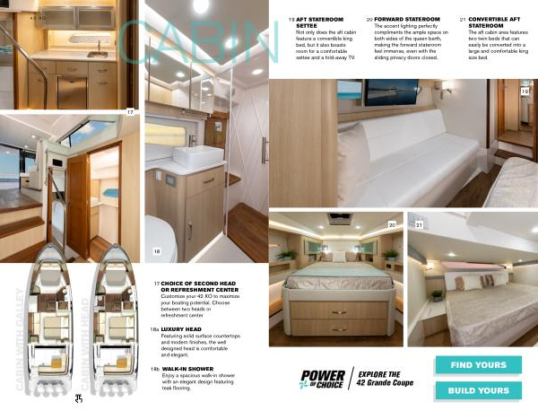 17 CHOICE OF SECOND HEAD OR REFRESHMENT CENTER Customize your 42 XO to maximize your boating potential . Choose between two heads or refreshment center