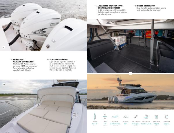 FOREDECK SUNPAD Lay back and enjoy the sunshine or sit up and watch the water on the multi-position foredeck sunpad . The optional cabana is perfect if you love the view but want some shade .