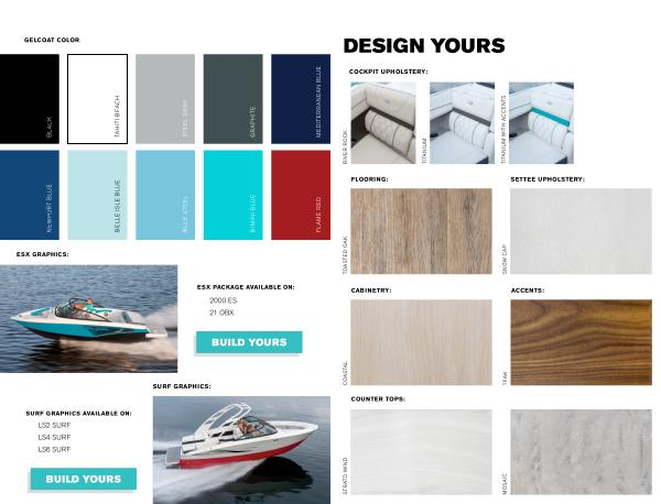 2000 ES 21 OBX LS2 SURF LS4 SURF LS6 SURF BLACK STEEL GRAY GRAPHITE MEDITERRANEAN BLUE NEWPORT BLUE BLUE STEEL BELLE ISLE BLUE TAHITI BEACH BIMINI BLUE FLAME RED GELCOAT COLOR : SURF GRAPHICS : ESX PACKAGE AVAILABLE ON : ESX GRAPHICS : SURF GRAPHICS AVAILABLE ON : BUILD YOURS BUILD YOURS