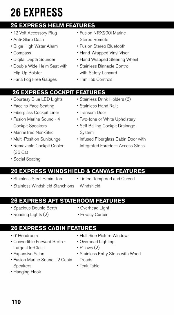 26 EXPRESS CABIN FEATURES