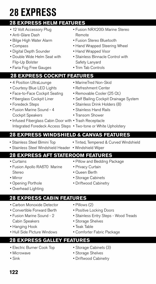 28 EXPRESS WINDSHIELD & CANVAS FEATURES