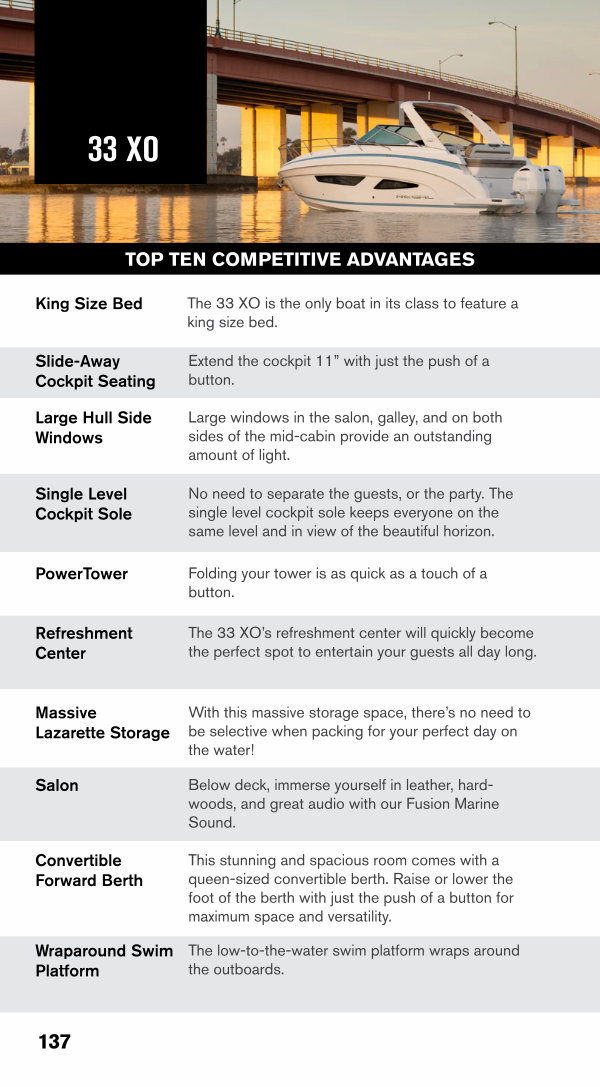 The 33 XO’ s refreshment center will quickly become the perfect spot to entertain your guests all day long.