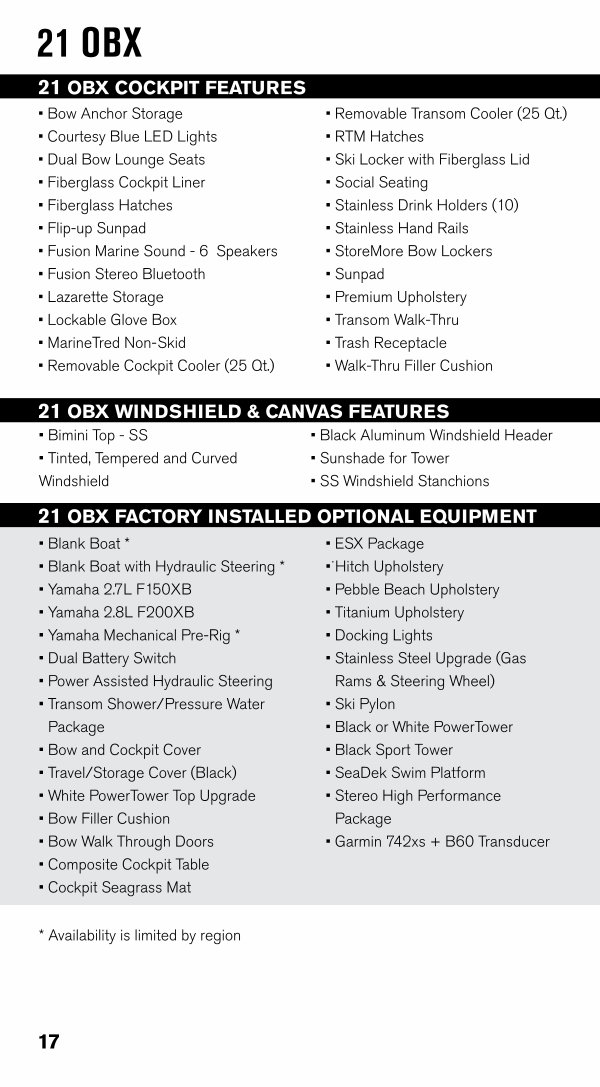 21 OBX FACTORY INSTALLED OPTIONAL EQUIPMENT
