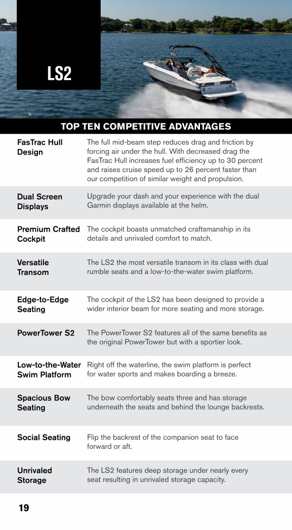 The LS2 the most versatile transom in its class with dual rumble seats and a low-to-the-water swim platform.