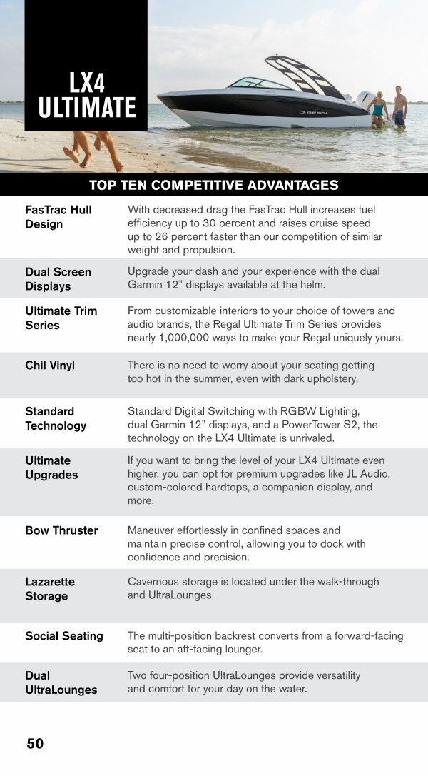 From customizable interiors to your choice of towers and audio brands, the Regal Ultimate Trim Series provides nearly 1,000,000 ways to make your Regal uniquely yours.