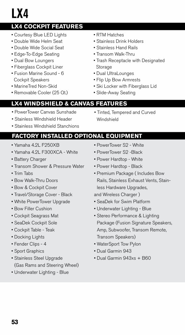 • Premium Package( Includes Bow Rails, Stainless Exhaust Vents, Stainless Hardware Upgrades, and Wireless Charger)